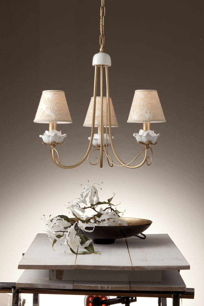 3 lights Chandelier with ceramic Roses