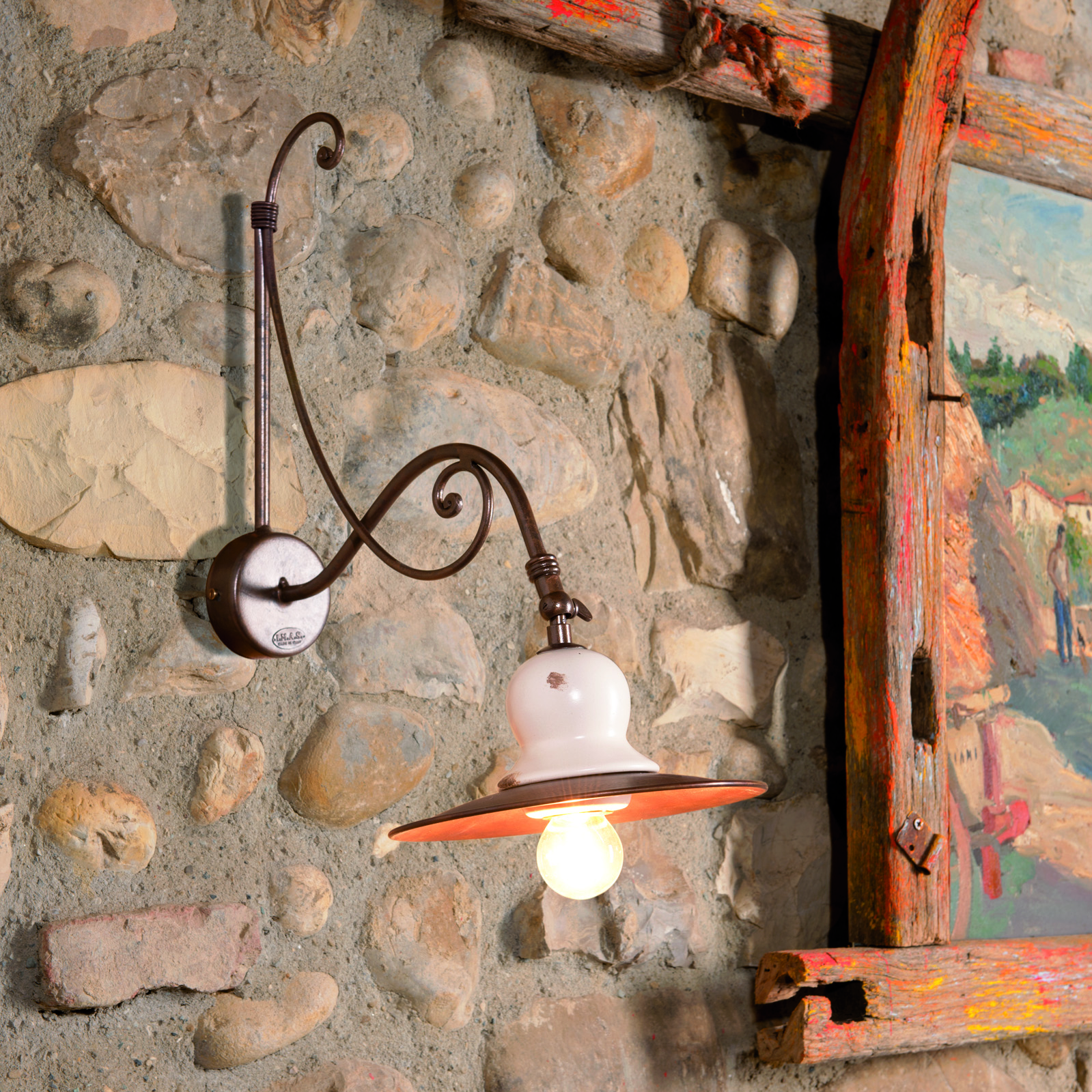 Ceramic and Iron Sconce with Brass Plate