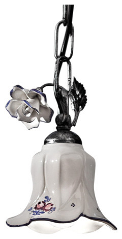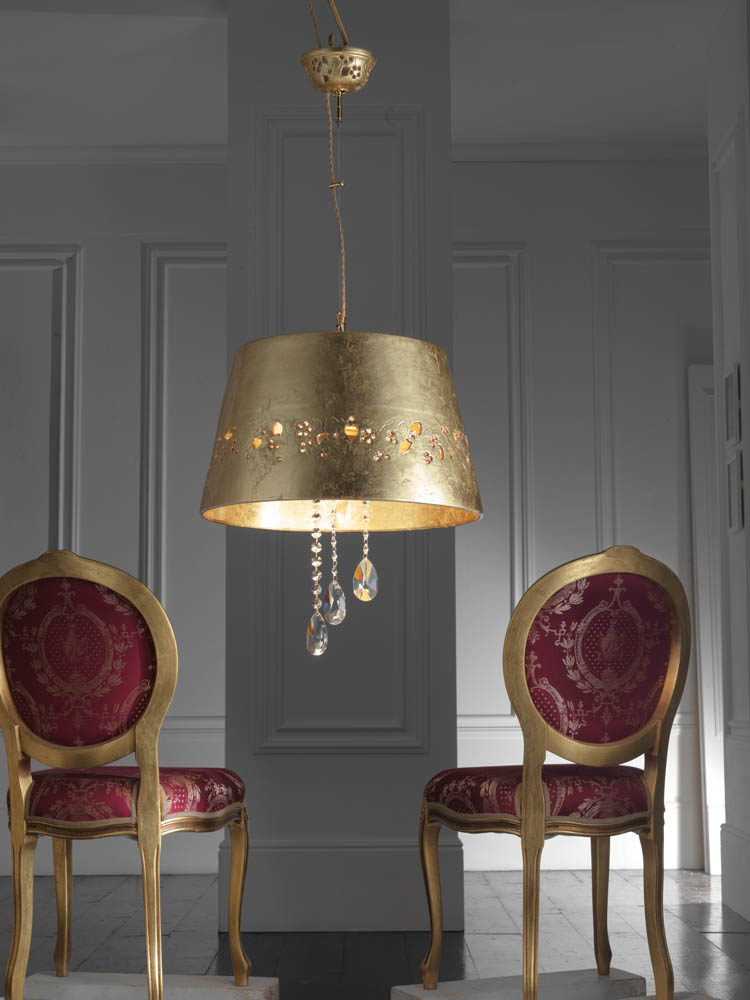 Open-worked Ceramic Pendant with Gold Leaf decòr and Cristals
