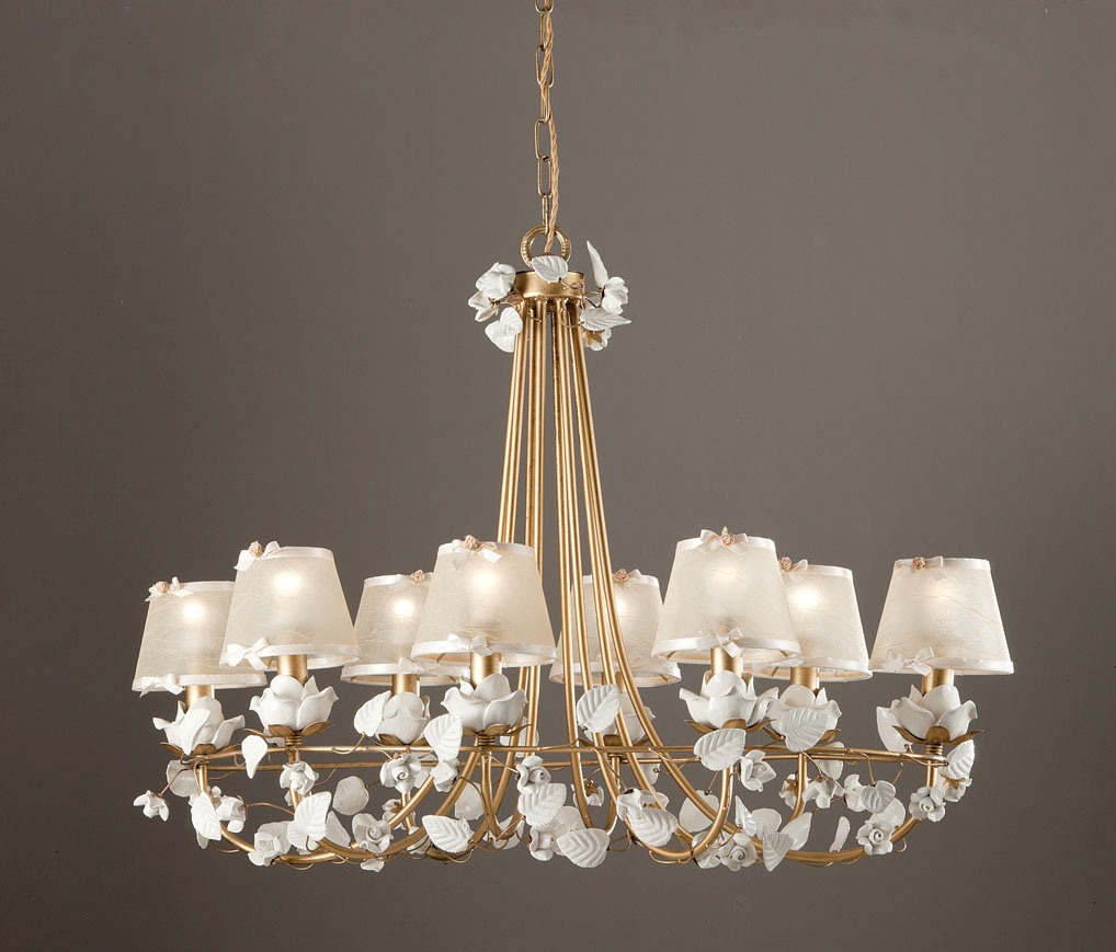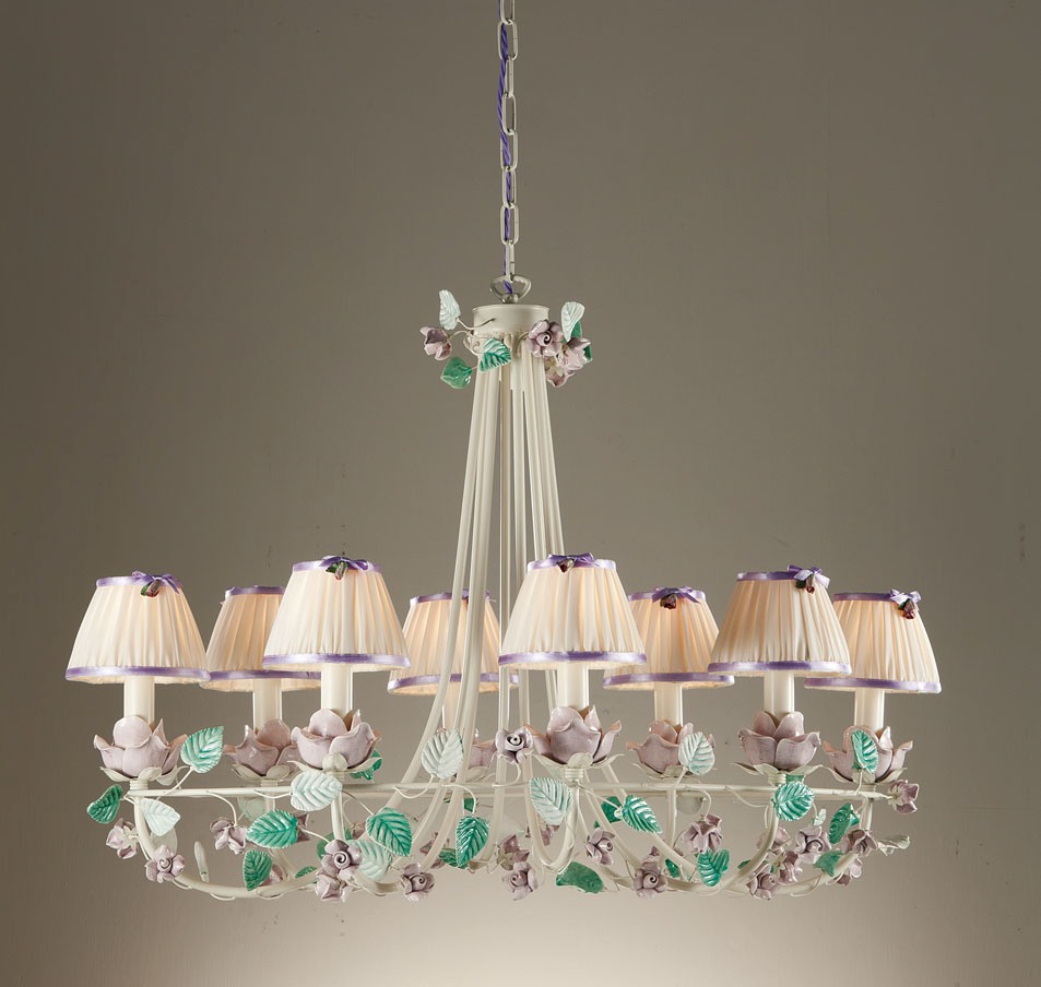41124/LP Wrought Iron Chandelier with Handmade Ceramic Roses